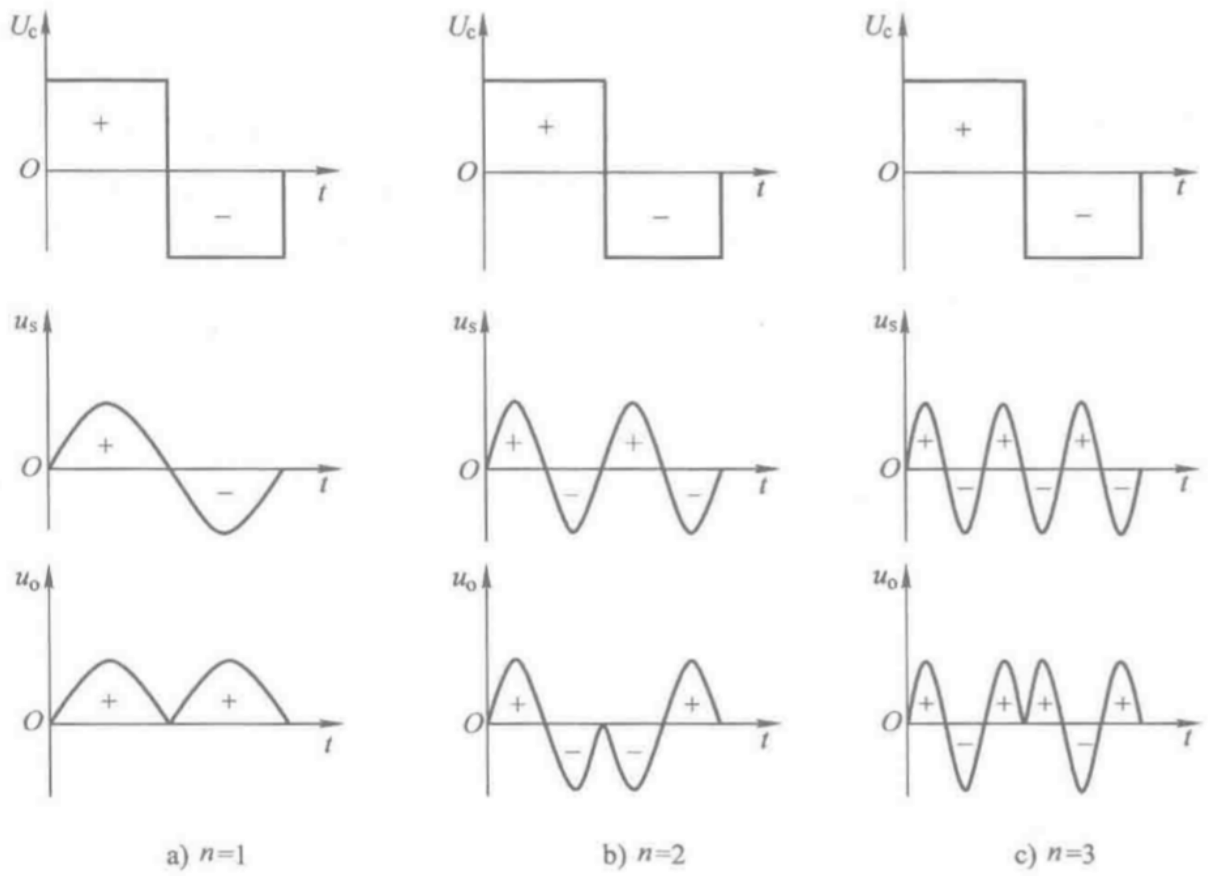 - 输入信号 u s u_s us与参考信号 u c u_c uc以相加减方式加到同一开关器件, u c > > u s u_c>>u_s uc>>us