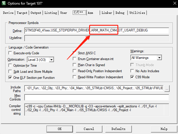 同时在MDK配置中添加头文件:ARM_MATH_CM4