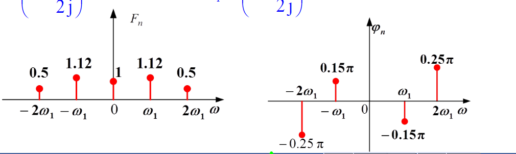 1.3所以,周期信号的频域分析就是分析频谱:幅度谱和相位谱。两种完备集对应的频谱关系如下: