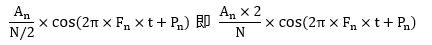 根据以上的结果,就可以计算出n点(n≠1,且n<=N/2)对应的信号的表达式为: