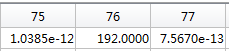 y变量的第76点对应数值:3.43858275186904e-12 + 192.000000000000i