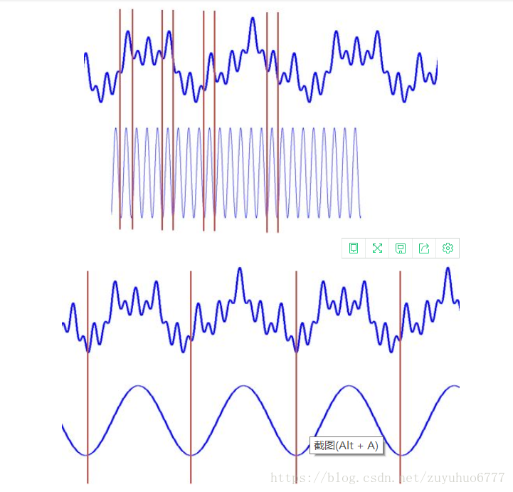 仔细体会可以发现,这一步其实是在计算信号和三角函数的相关性。