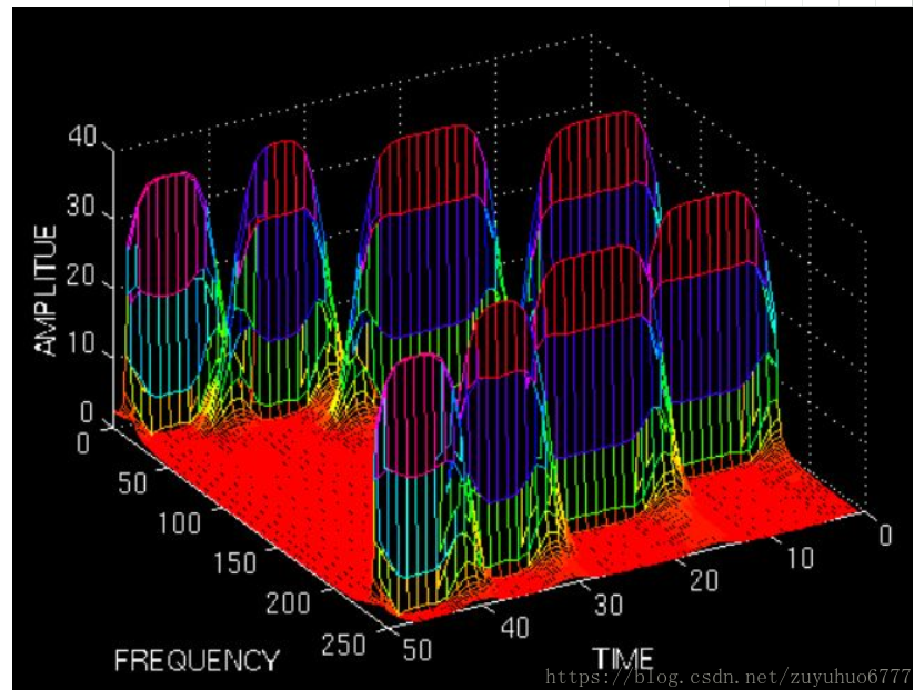时域上分成一段一段做FFT,不就知道频率成分随着时间的变化情况了吗!用这样的方法,可以得到一个信号的时频图了: