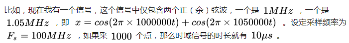 x = cos(2*pi*1e6*t0) + cos(2*pi*1.05e6*t0); % 信号函数
