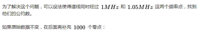可以发现,频谱点稀疏,在1MHz附近根本无法将1 MHz 和1.05 MHz 的两个频率分开。
