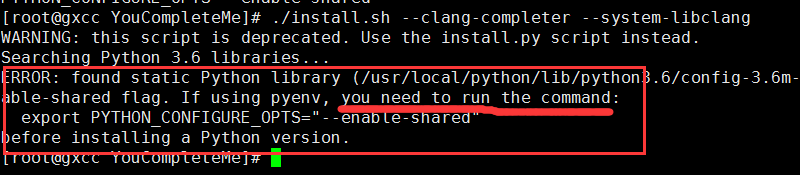 提示 找不到python的库,但我注意到了后面的提示。 you need to run the command export PYTHON_CONFIGURE_OPTS ="--enable-shared"