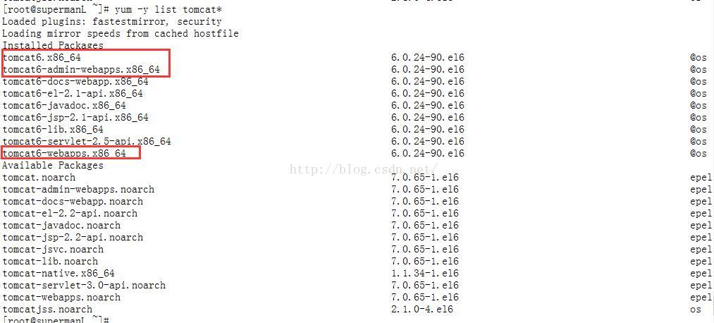 2.1查看可以安装的tomcat内容:yum -y list tomcat*