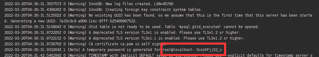 注意: 初始化后会在 /var/log/mysqld.log 中生成随机密码(使用以下命令查看)