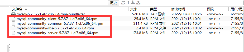 [root@VM-4-17-centos mysql]# tar -xvf mysql-5.7.37-1.el7.x86_64.rpm-bundle.tar