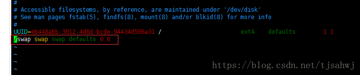 为了保证下次系统启动后,此swap分区被自动加载,需要修改系统的fstab文件,操作如下: