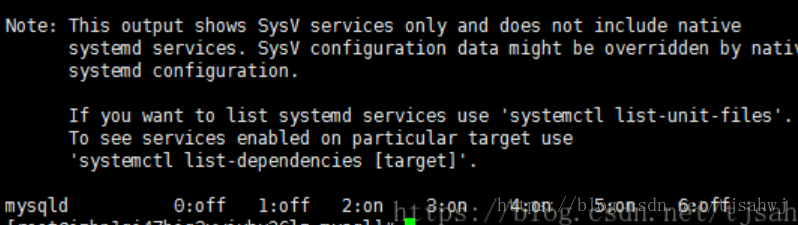 mysqld服务已经生效,在2、3、4、5运行级别随系统启动而自动启动,以后可以使用service命令控制mysql的启动和停止