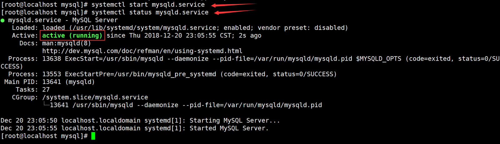 [root@localhost mysql]# systemctl start mysqld.service