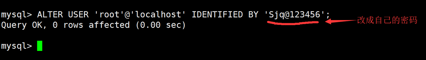 mysql> ALTER USER 'root'@'localhost' IDENTIFIED BY 'Sjq@123456';