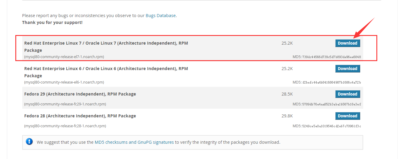 官网地址 https://dev.mysql.com/downloads/repo/yum/
