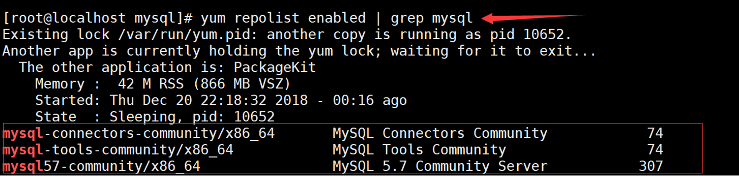 [root@localhost mysql]# yum repolist enabled | grep mysql