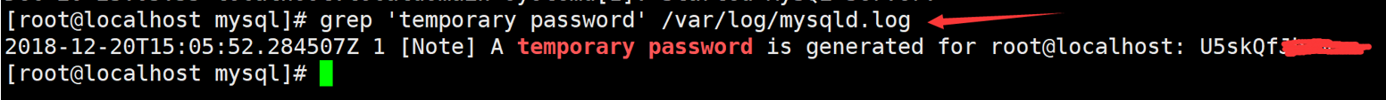 [root@localhost mysql]# grep 'temporary password' /var/log/mysqld.log