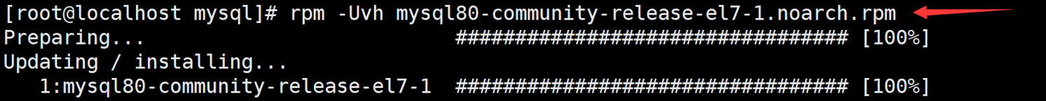 [root@localhost mysql]# rpm -Uvh mysql80-community-release-el7-1.noarch.rpm