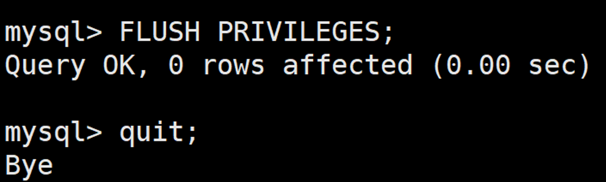 mysql> FLUSH PRIVILEGES; mysql> quit;