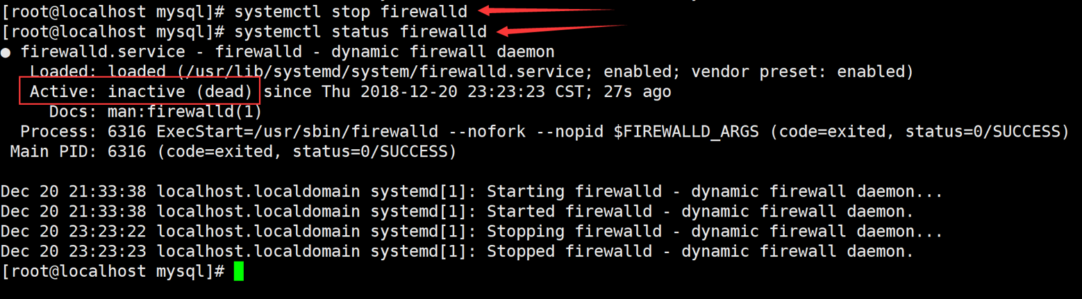 [root@localhost mysql]# systemctl stop firewalld
