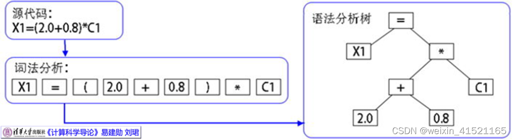 【例】对表达式:X1=(2.0+0.8)*C1进行语法分析。