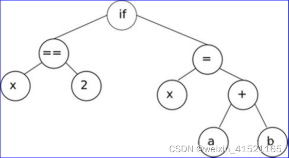 【例】条件语句:if x= =2 then {x=a+b} 的语法分析树。