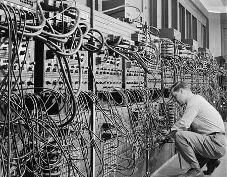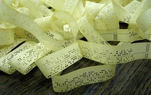 计算机刚被发明出来的时候相当笨重且不智能。 当时的计算机一切数据和操作指令都是通过穿孔纸带输入的。 穿孔纸带利用一排孔表示一个字符,用穿孔或不穿孔表示1和0,来将指令和数据导入内存。