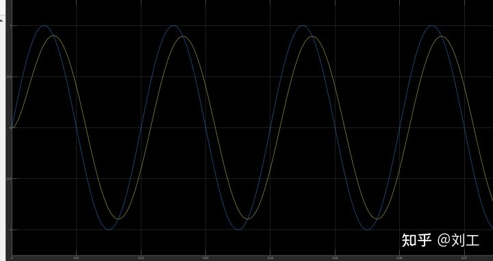 黄色波形为输出波形。可以看出来输出波形稍微有点滞后于输入波形。