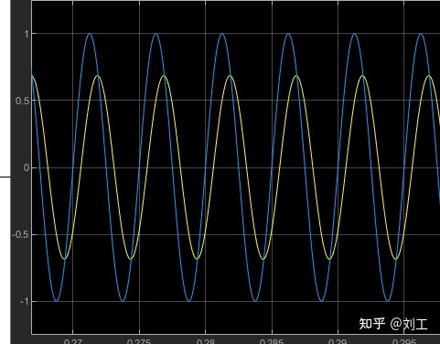 输入一个幅值为1,频率为100Hz的正弦波。输入输出波形如下图所示