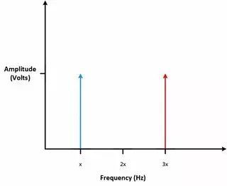 请查看上图1中的信号。有两个频率不同的信号。在该情况下,频域中就会显示两条表示不同频率的竖线。