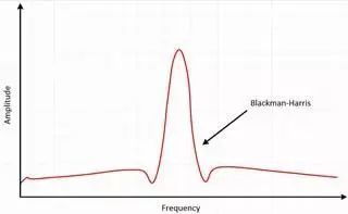 图14 Blackman-Harris窗的结果是较宽的波峰,旁瓣有压缩