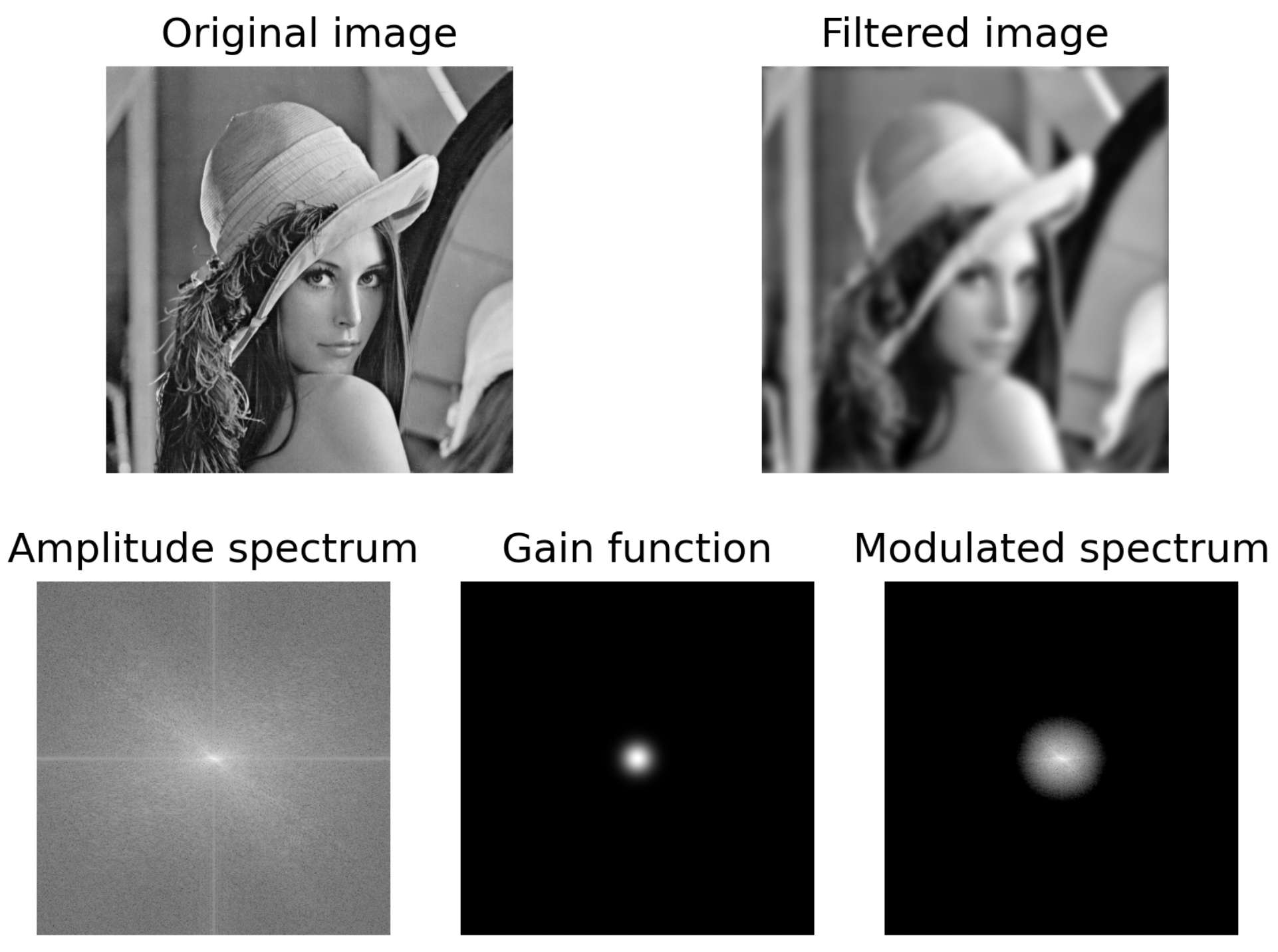 拓展知识,你可能见过用高斯函数对一张图片进行模糊,可以理解为将图像与高斯核进行卷积,而时域(空间域)的卷积,等于频域的乘积。且高斯函数比较特殊,它的频域也是高斯函数,所以本质上,你看到的算法和这个案例是一回事。