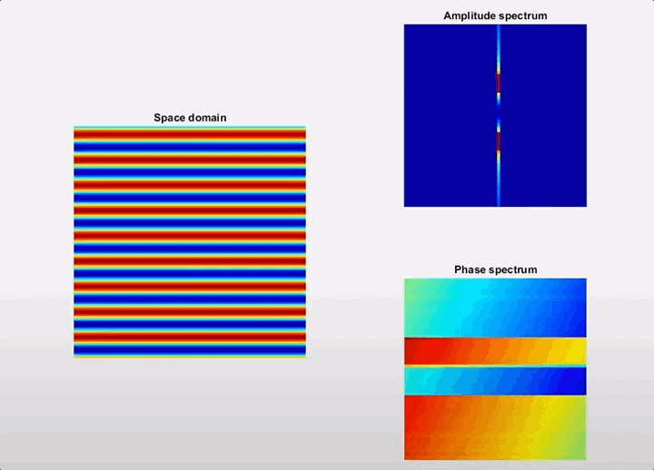 把圆形看成空间域的一段信号,这个信号的特征没有改变,只是改变"出场的时机",幅值频谱只和信号的形状有关,但是观察右下方的相位谱不断在变化,表示信号分量的初始角度持续在变