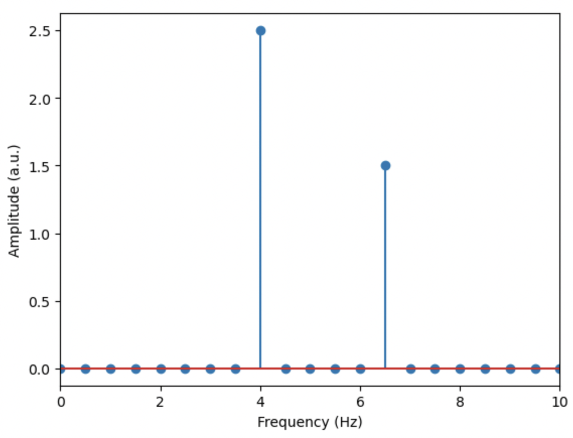 signal=2.5sin(2π * 4 * t)+1.5sin(2π * 6.5 * t)