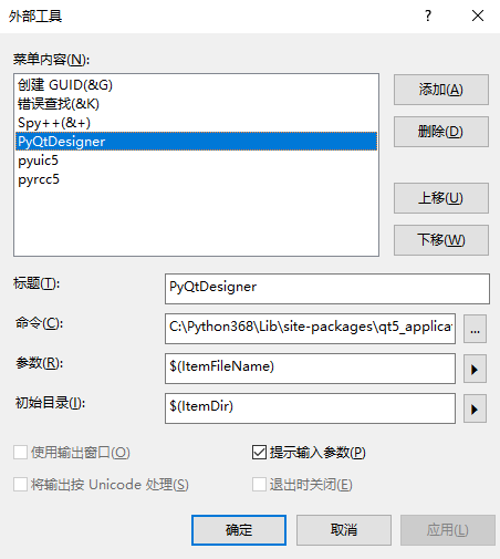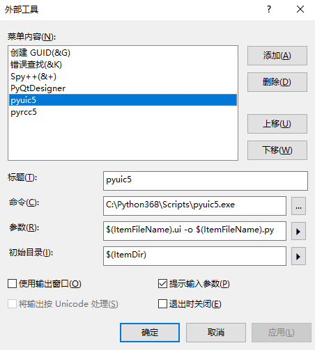 参数:$(ItemFileName).ui -o $(ItemFileName).py