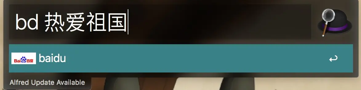 在Alfred上使用刚自定义的百度搜索,输入