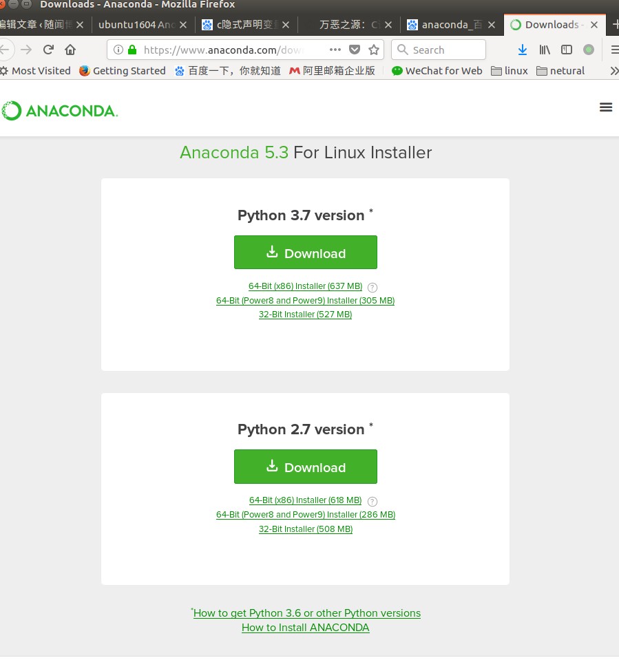 我下的是自带python2.7的anaconda版本,Anaconda2-5.3.0-Linux-x86_64.sh,根据自己需求下载相应版本.