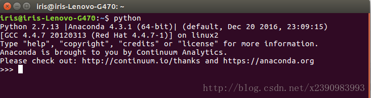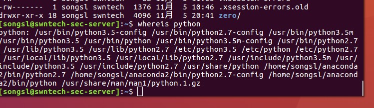 打开新的终端,查看结果,可以看到python已经变为Anoconda版本(/home/songsl/anaconda2/bin/python2.7),系统默认路径:/usr/bin/python