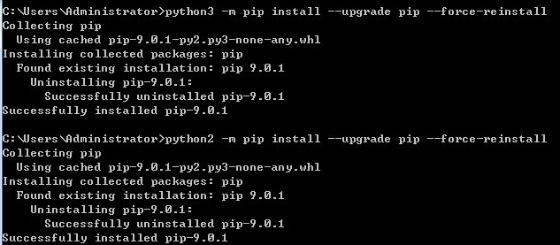 修改python3.5.2版本安装目录(C:UsersAdministrator--20170503LAppDataLocalProgramsPythonPython36)下python.exe改为python3.exe后,在cmd窗口下运行python3 -m pip install --upgrade pip --force-reinstall;