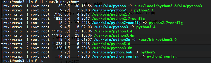 4.将新的python3.6的程序文件做软链接指向/usr/bin下面