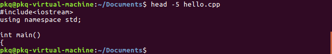 显示指定文件的前面几行。如果没有指定文件,将从标准输入(键盘)上读取。如果没有指定要显示的行数,则默认显示前10行。如果要显示文件的前5行: