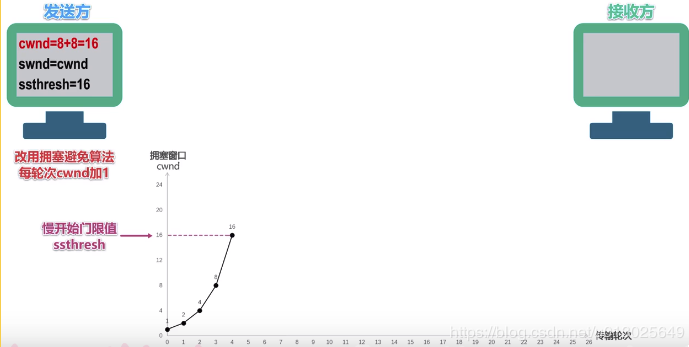 慢启动呈指数增长。达到慢开始门限值之后开始使用拥塞控制算法——线性加1。