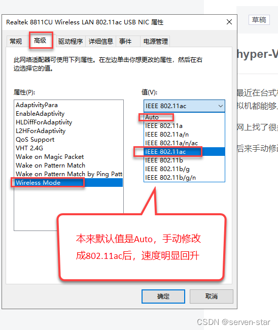 后来手动修改了无线网卡的Wireless model之后,发现速度明显回升了。如图: