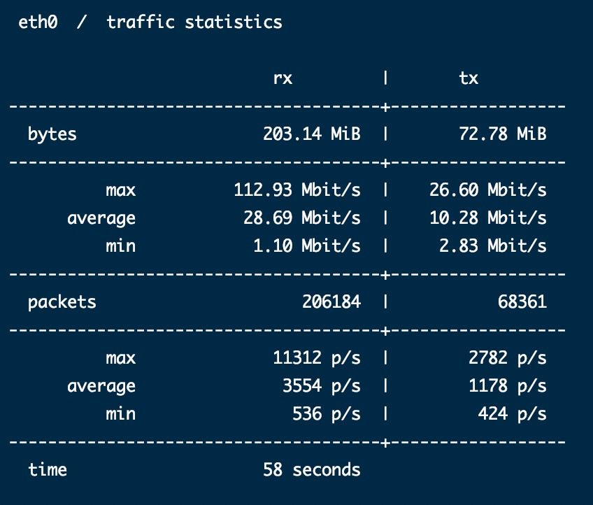 ctrl+c结束后,会显示监控期间的流量统计结果