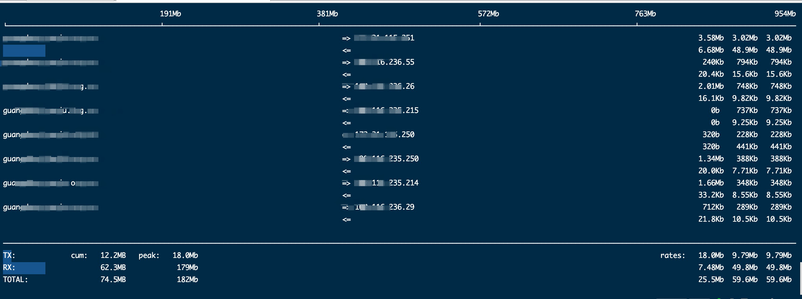iftop可以用来监控网卡的实时流量(可以指定网段)、反向解析IP、显示端口信息等