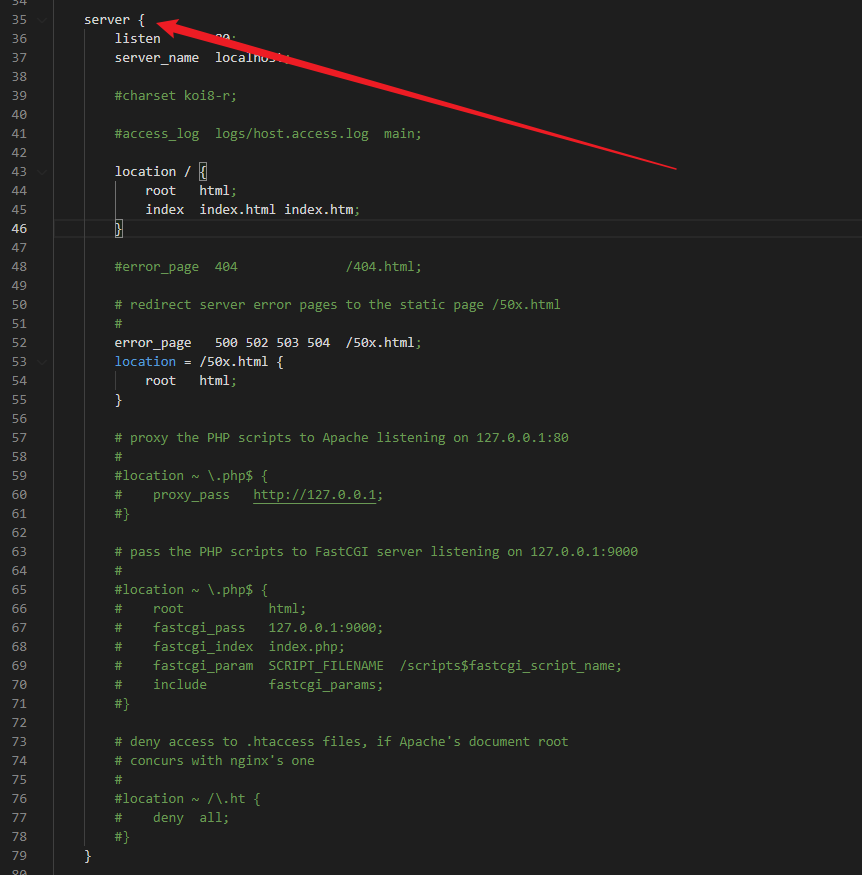 以上就是开心煎饼最近收集整理的关于nginx 左本地目录映射下载解压nginx2.进入conf目录打开nginx.conf文件3.打开文件后找到server标签4.然后就是编写匹配规则 具体详细规则参考nginx location配置详细解释 - 星朝 - 博客园的全部内容,更多相关nginx内容请搜索靠谱客的其他文章。