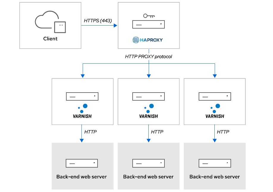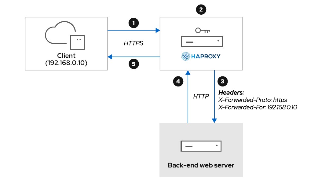 下图显示客户端系统使用HTTPS通过HAProxy访问web内容。然后HAProxy使用HTTP从后端web服务器访问内容。