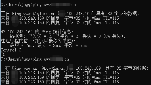 两个域名需要先解析到同一个外网服务ip上