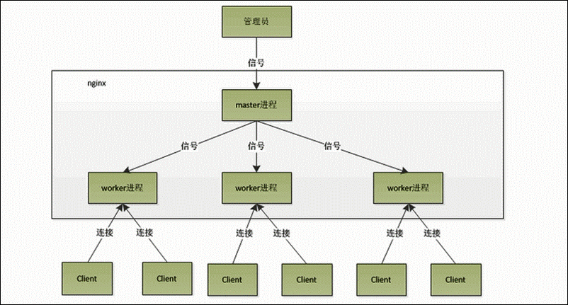 Nginx在启动后,会有一个master进程和多个worker进程。master进程主要用来管理worker进程,包含:接收来自外界的信号,向各worker进程发送信号,监控 worker进程的运行状态,当worker进程退出后(异常情况下),会自动重新启动新的worker进程。而基本的网络事件,则是放在worker进程中来处理了。多个worker进程之间是对等的,他们同等竞争来自客户端的请求,各进程互相之间是独立的。一个请求,只可能在一个worker进程中处理,一个worker进程,不可能处理其它进程的请求。worker进程的个数是可以设置的,一般我们会设置与机器CPU核数一致,这里面的原因与Nginx的进程模型以及事件处理模型是分不开的。