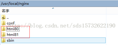 现在,访问ip:80会访问到html80文件夹内的内容,访问ip:81就会访问到html81文件夹内的内容。此时nginx监听的端口分别的是80和81。