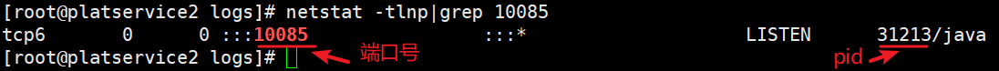 2. 进入出问题的后端服务器, netstat -tlnp|grep 端口号, 查看指定端口号的进程情况,主要是查进程号pid